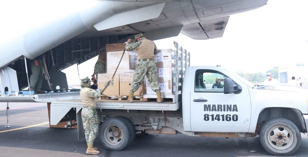 Tabasco.- En el aeropuerto internacional de Villahermosa “Carlos Rovirosa Pérez”, este día el gobernador Adán Augusto López Hernández recibió de manos de elementos de la Secretaría de Marina (Semar), 30 ventiladores mecánicos y 46 monitores que fueron enviados por el gobierno federal a través del Instituto de Salud para el Bienestar (Insabi), a bordo de un avión Airbus C275, para atender la emergencia sanitaria por el COVID-19.
