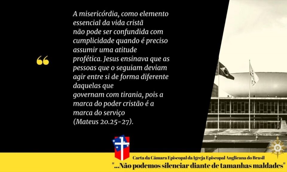 Sentimos el cansancio que nos lleva al agotamiento, pero el Espíritu Santo nos mueve en nuestro deber de denunciar tales cosas. Por estos motivos, que hemos repetido constantemente en nuestras cartas pastorales y, también, cuando expresamos nuestro apoyo a diversas entidades, movimientos y personas de buena voluntad en el avance de la solicitud de impeachment del Presidente. No podemos quedarnos callados ante tal maldad. También nos distanciamos de cualquier segmento religioso que, evocando el Evangelio, legitime, apoye y aliente estas prácticas crueles, inhumanas e inaceptables.