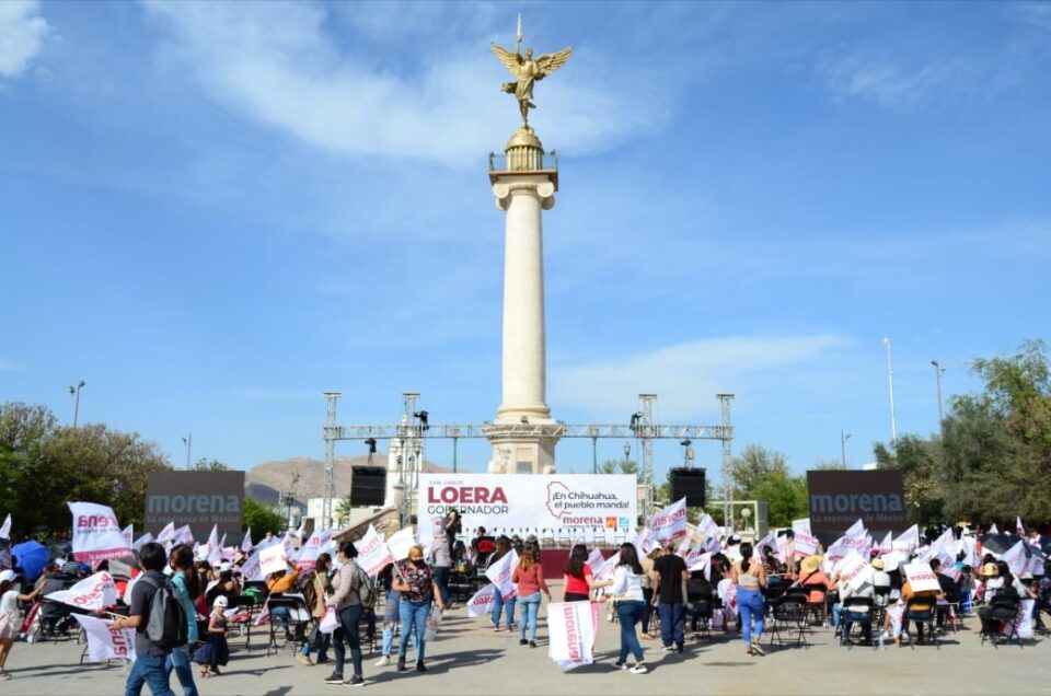 Chihuahua.- Durante un encuentro con mujeres de la ciudad de Chihuahua en la Plaza de la Grandeza, Juan Carlos Loera, candidato a la gubernatura por la Coalición Juntos Haremos Historia en Chihuahua, sostuvo aseguró que en Morena existe la convicción de dar a las mujeres el papel que se merecen en la sociedad.