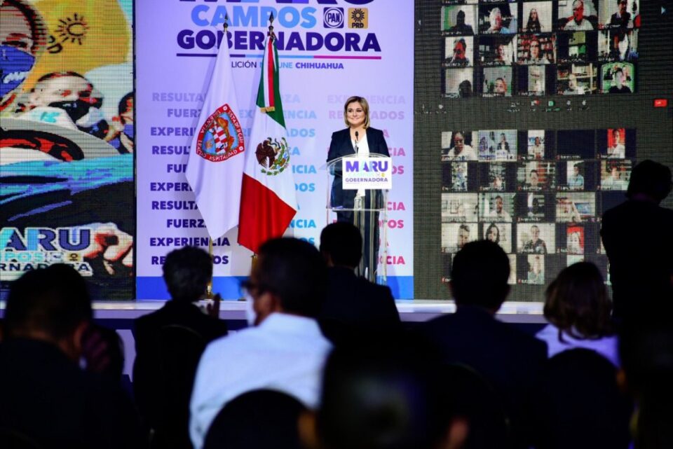Ciudad Juárez.- Maru Campos Galván, candidata a la gubernatura de Chihuahua por el PAN-PRD, presentó este miércoles sus propuestas para un mejor futuro, en un evento transmitido a través de Facebook para llegar a todos los chihuahuenses, además de contar con el respaldo de cientos de personas de todo el país que se conectaron vía zoom, o asistieron físicamente al recinto donde se llevó a cabo su presentación de propuestas.