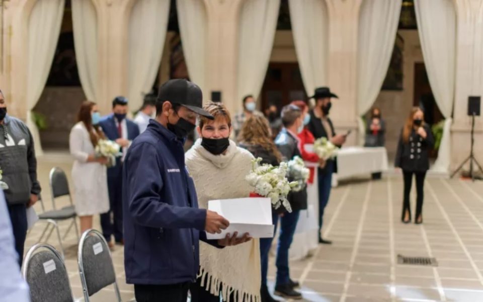 Chihuahua.- Para promover la relevancia jurídica del matrimonio y así poder dar certeza a sus patrimonios, 4 mil 99 parejas atendieron la convocatoria del Gobierno del Estado para participar en la edición del 2022 de la ceremonia de Matrimonios Colectivos, misma que en atención a las medidas de prevención de contagios por Covid-19, se llevó a cabo solo con la representación de 11 parejas de distintos municipios del Estado de Chihuahua.