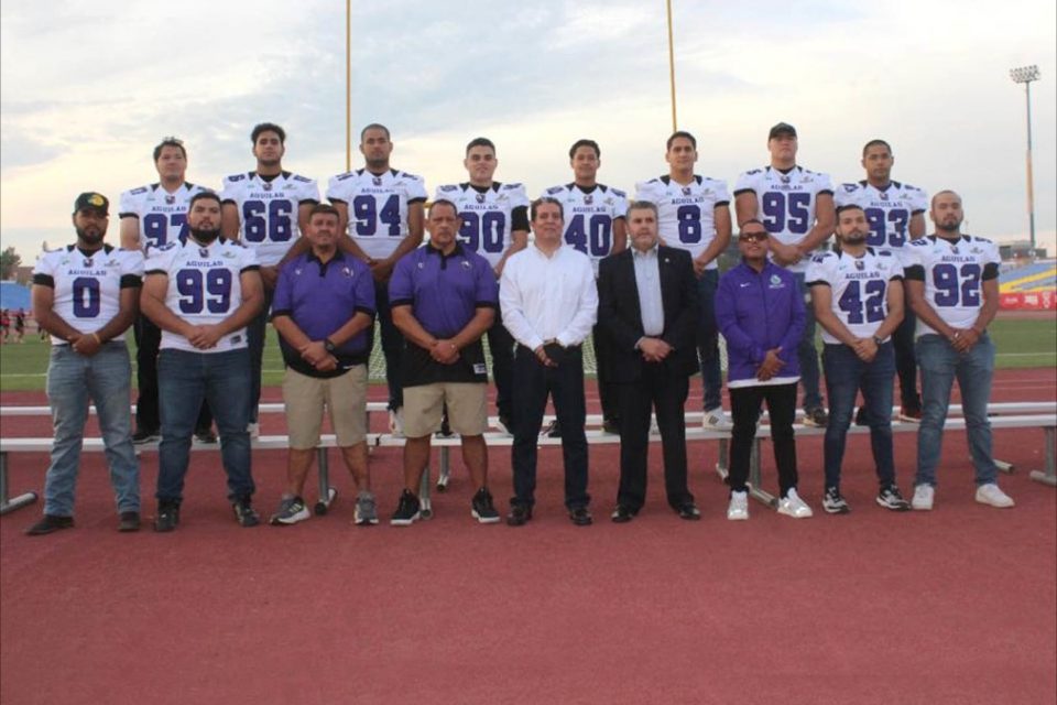 Chihuahua, Chih.- Con el patrocinio de la organización Caudillos de Chihuahua, fue presentado el equipo de Las Águilas de la Universidad Autónoma de Chihuahua, en un acto donde se hizo entrega a los jugadores de jerseys y cascos para la próxima temporada del futbol americano de la ONEFA, Zona Norte.