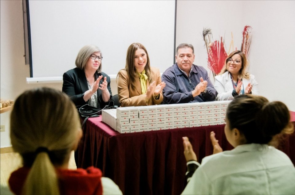 La presidenta del DIF, acompañada de la directora general, Lucia Chavira, hizo la entrega formal de las cajas del fármaco frente al personal médico de Centros Comunitarios, coordinado por Cisneros.