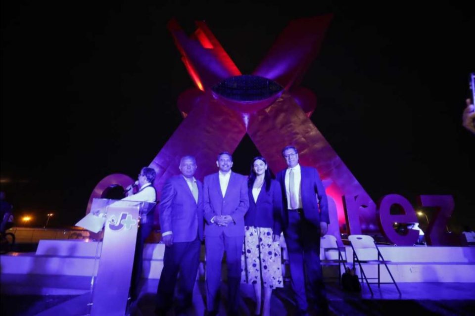 Ciudad Juárez, Chih.- En alusión al color del agua, en el marco del Día Internacional del Agua, tras un conteo regresivo, se encendió la iluminación de color azul en la icónica “X” en la Plaza de la Mexicanidad, al igual que en algunos monumentos representativos de la ciudad, tonalidad que permanecerá durante las actividades de la Semana por el Cuidado del Agua, que concluye el domingo 26 de marzo con la carrera “Por el Cuidado del Agua en el Desierto 2023”.