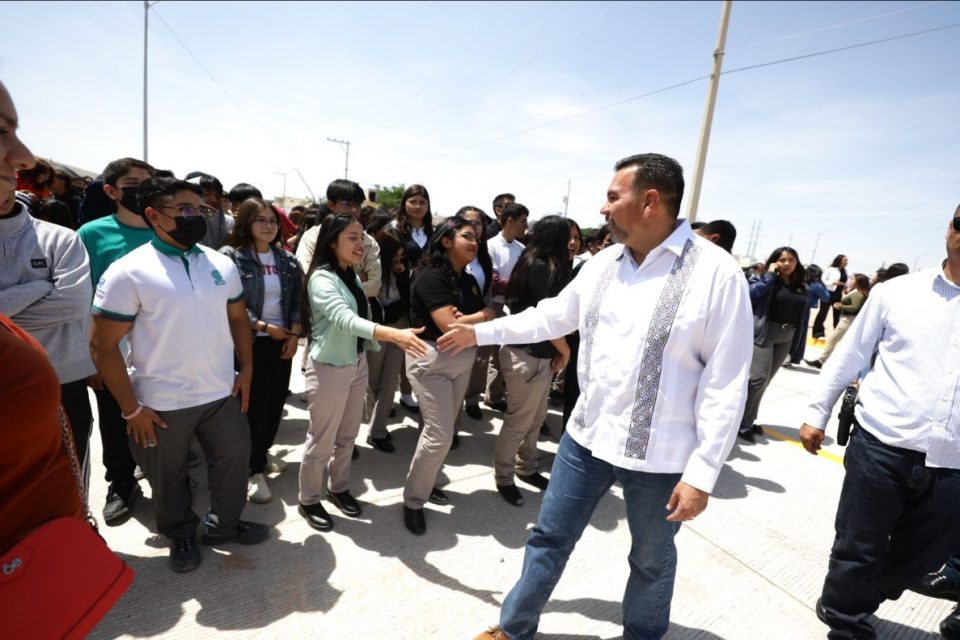 El presidente Pérez Cuéllar mencionó que gracias a la intervención con concreto hidráulico, la vialidad tendrá una vida útil de al menos 30 años, beneficiando así a los estudiantes del Colegio de Bachilleres Plantel 9.