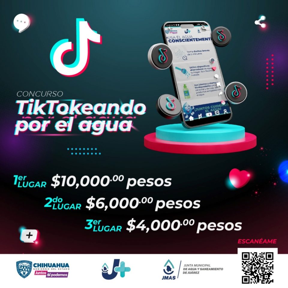 Ciudad Juárez, Chih. – La Junta Municipal de agua y Saneamiento (JMAS), dio a conocer los nombres de los ganadores del concurso por el día del estudiante, Tiktokeando por el Agua, así como el premio al que se hicieron acreedores.