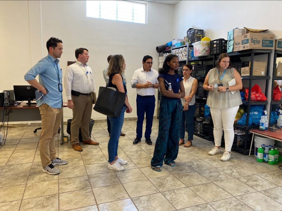 Durante el recorrido estuvieron Immanuel Brand, de la Embajada de Alemania; Carl Engelsen, de la Embajada de Francia; Nadege Sango Afonso, de la Embajada de Países Bajos; Cristina Marín, de la Unión Europea; y James Yong, jefe de la oficina de campo de la ACNUR.