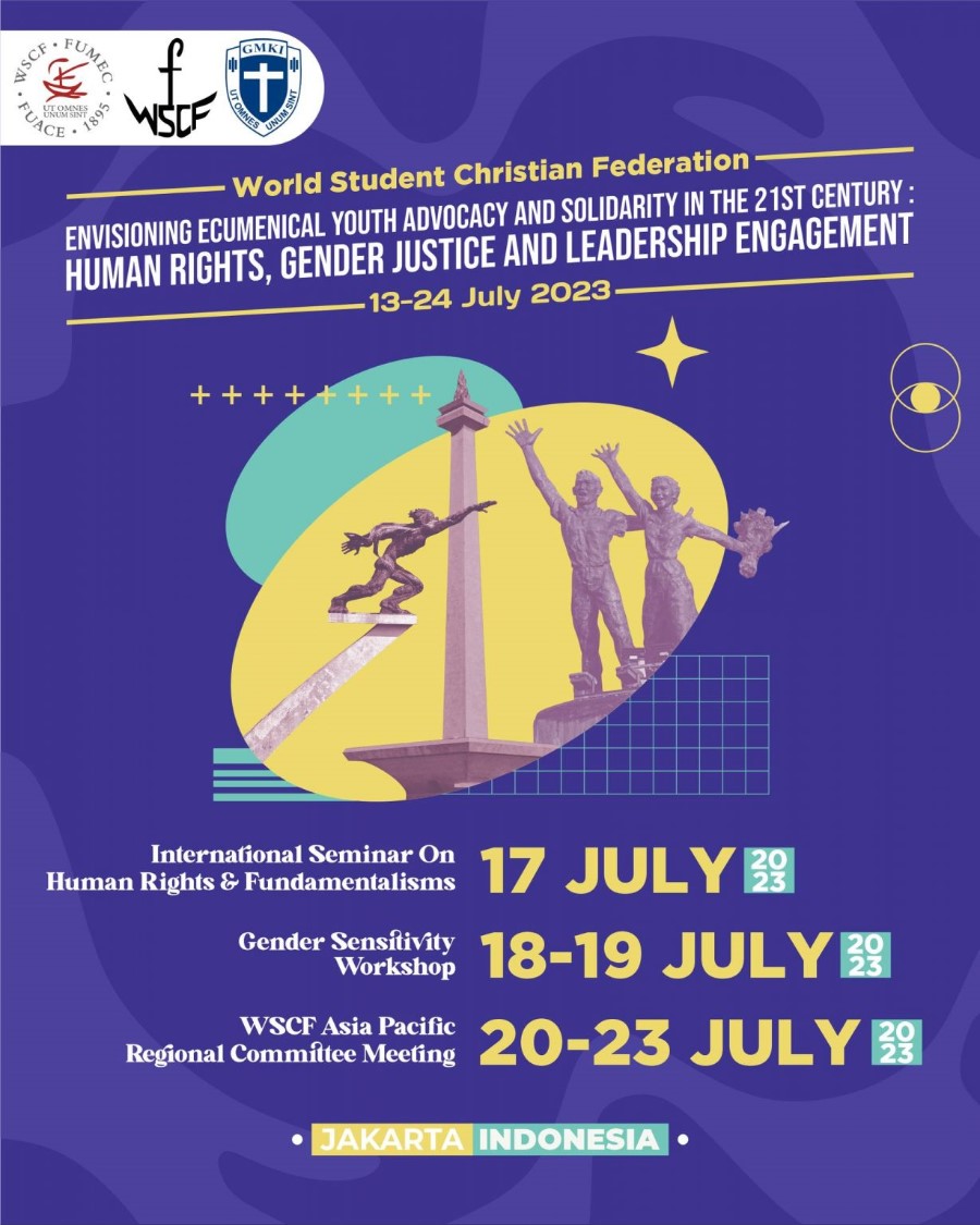 Indonesia. – La Federación Mundial de Movimientos Estudiantiles Cristianos-WSCF (por sus siglas en inglés) se reúne en Yakarta (Indonesia) del 13 al 24 de julio bajo el lema “Una visión ecuménica de la defensa de los derechos y la solidaridad de los jóvenes en el siglo XXI: derechos humanos, justicia de género y compromiso con el liderazgo”. El anfitrión de este evento mundial será el Movimiento Estudiantil Cristiano de Indonesia -GMKI y la Federación Universal de Movimientos Estudiantiles Cristianos de Asia y el Pacífico.