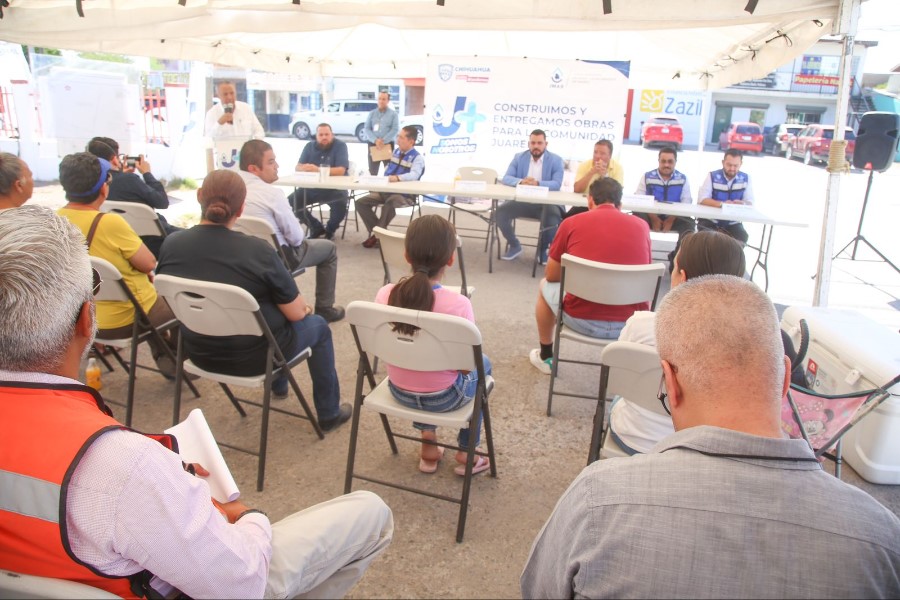 Sergio Nevárez, director ejecutivo de la JMAS Juárez, hizo entrega de la línea morada instalada en calle Neptuno, entre la avenida Ejército Nacional y bulevar Gómez Morín, en la colonia Satélite, donde se instalaron más de 1 mil 100 metros de tubería de 8 y 16 pulgadas de diámetro y 25 válvulas.