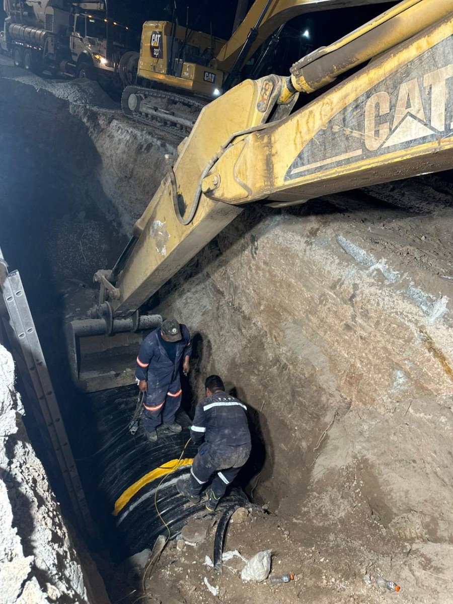 En menos de 18 horas, personal de la JMAS Juárez realizó las labores de cierre de vialidades, apertura de concreto, “encamizado” de la tubería del colector.