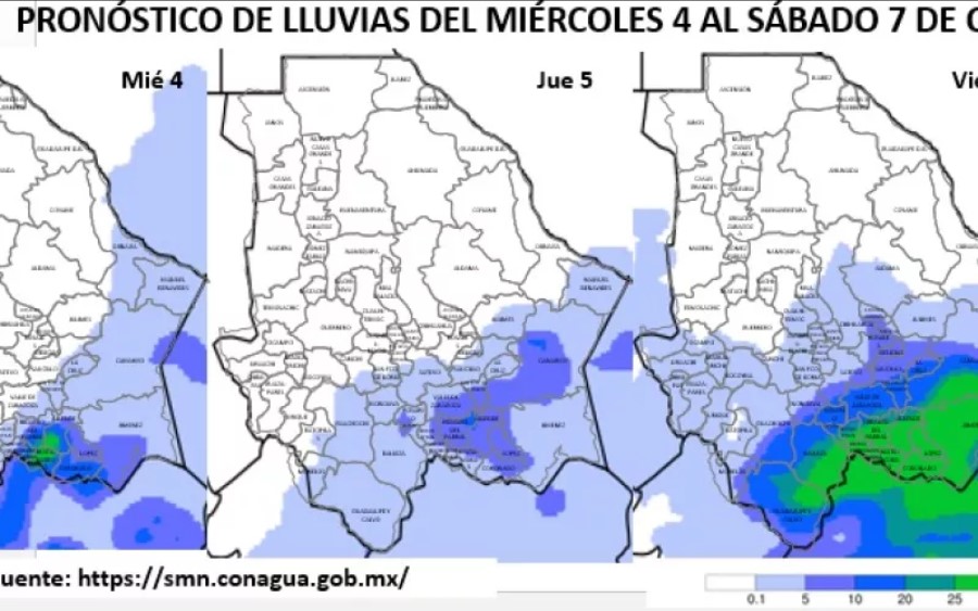 La Coordinación Estatal de Protección Civil, informó que se anticipan lluvias de moderadas a puntualmente fuertes (de 5.1 a 25 mm) en la región sur del estado, que incluye a municipios como Matamoros, San Francisco del Oro, Santa Bárbara, Parral, Allende, López, Coronado y Jiménez.