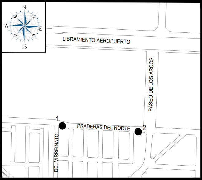 Por lo tanto, habrá suspensión de servicio. Las labores se realizarán sobre el carril derecho en sentido de poniente a oriente de la calle Praderas de Norte entre Paseo de Los Arcos y Del Virreinato.