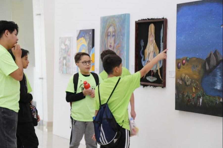 Alumnos de Universidad Infantil hacen un recorrido por una exposición en el Centro Cultural de las Fronteras.