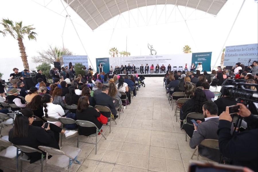 El acto se realizó en cumplimiento del Estado Mexicano al informe de fondo 288/21 del Caso 13.337 de niñas y jóvenes desaparecidas y asesinadas en Ciudad Juárez, solicitado por la Comisión Interamericana de Derechos Humanos.