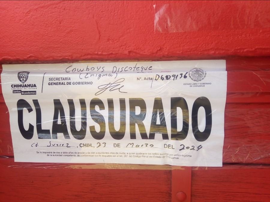 - Salón de baile “Cowboys Discoteque (Enigma)”, por hechos de sangre, operar fuera de horario y doble denominación (Ciudad Juárez).