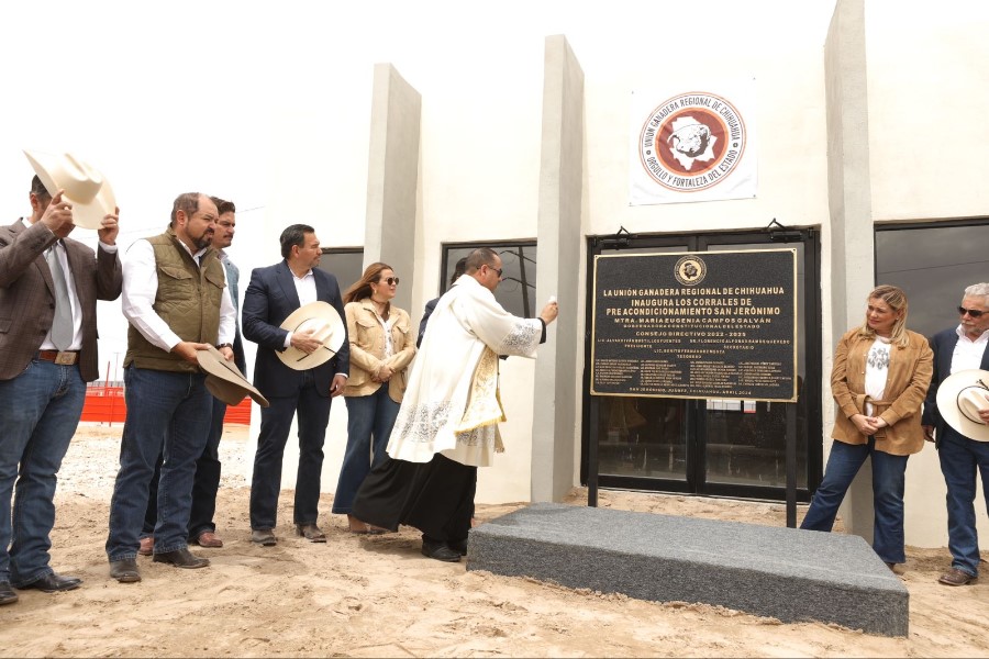 Ciudad Juárez, Chih. – Con una inversión de 38 millones de pesos, la Unión Ganadera Regional de Chihuahua (Ugrch) inauguró sus nuevas instalaciones en San Jerónimo, mismas que en una primera etapa, albergará las oficinas del organismo, así como de autoridades de México y Estados Unidos y de agencias aduanales, además de corrales de preacondicionamiento con capacidad para 2 mil 200 cabezas de ganado.
