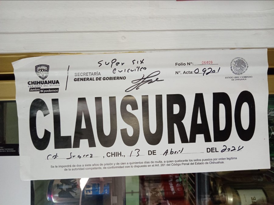* Tienda de abarrotes “Súper Six Cuiculco”, se clausuró refrigerador por violación de giro (Ciudad Juárez).