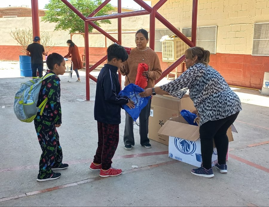Adicionalmente, la JMAS entregó 155 mochilas con vaso y bolo para cada uno de los estudiantes. De manera simbólica, fueron recibidas por dos alumnos de primer grado: Erick Norberto Gardea Ochoa y Gisele Esquivel Esquivel.