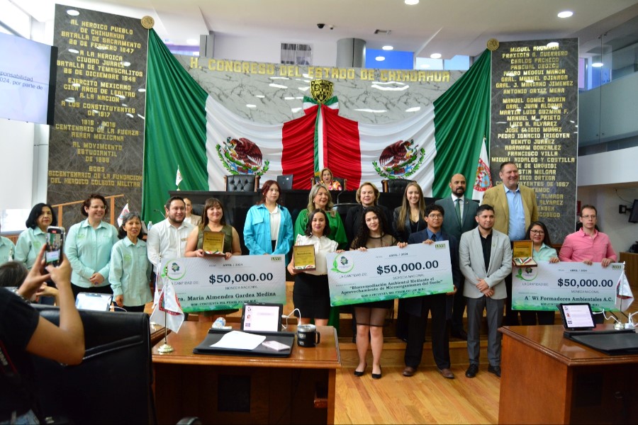 Chihuahua, Chih. – El Congreso del Estado en Sesión Ordinaria de este 23 de abril, hizo entrega del Premio a la Responsabilidad Medioambiental del Estado de Chihuahua en su edición 2024, evento con el cual se reconocen las actividades de personas físicas, empresas y organizaciones de la sociedad civil, a favor de la conservación y protección del medio ambiente, y que éstas hayan traído beneficios a la comunidad, al Estado, al País o a la humanidad.