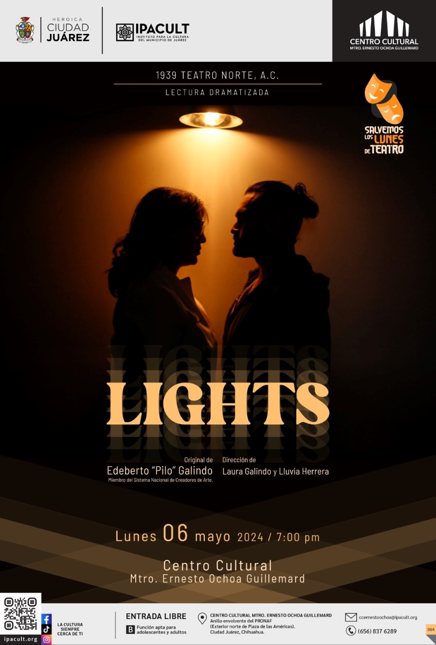 El próximo 6 de mayo, “Lights” del dramaturgo Edeberto “Pilo” Galindo se presenta en el Centro Cultural Ernesto Ochoa Guillemard a las 7:00 de la tarde, y la entrada es gratuita para todo público.