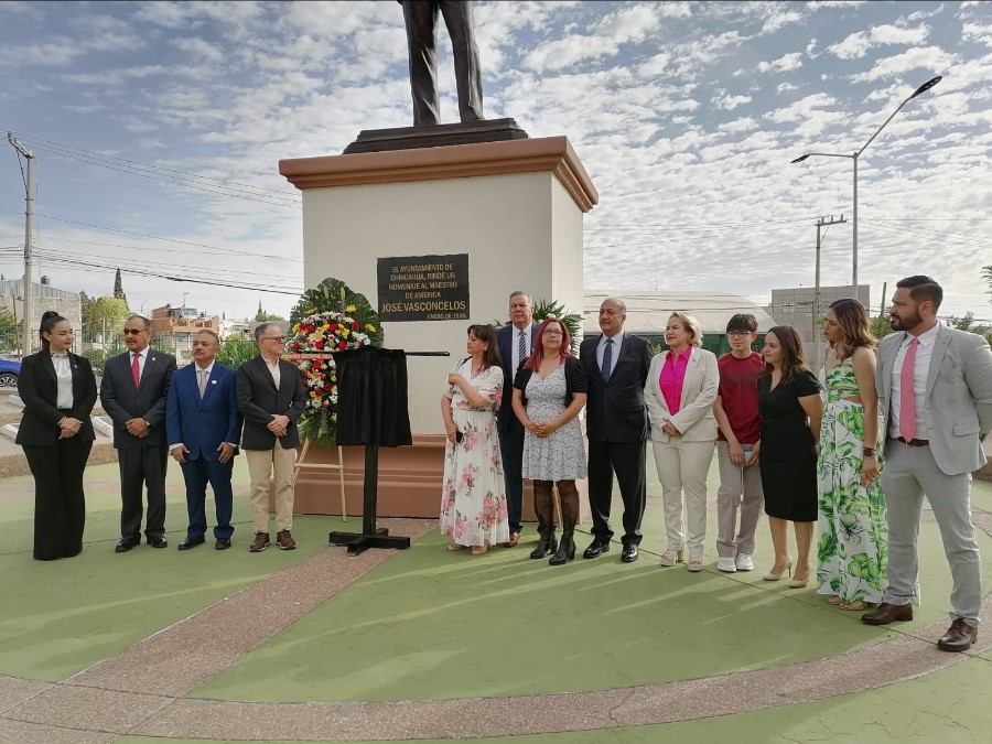 Chihuahua, Chih. – A través de la diputada presidenta, Adriana Terrazas Porras, el Congreso del Estado de Chihuahua, participó en el reconocimiento al profesor Miguel Ángel González García, realizado en el Parque Palomar donde se realizó el izamiento de la Bandera Monumental así como la develación de una placa que lleva su nombre en la Rotonda de Maestros Ilustres en el marco de la celebración por el Día del Maestro.