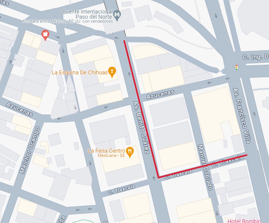 Ciudad Juárez, Chih. – El Fideicomiso de Puentes Fronterizos de Chihuahua (FPFCH) informó que mañana, 25 de mayo de 2024, un tramo de la avenida Juárez estará cerrado con motivo de la verbena popular en conmemoración de la Toma de Juárez, por lo que se modificará el ingreso a la línea regular de vehículos al Puente Internacional Pao del Norte.