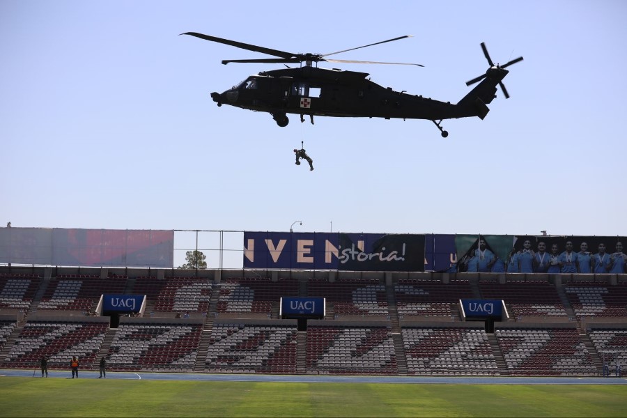 Ciudad Juárez, Chih. – Con un simulacro de sismo de 7.5 grados en la escala de Richter, inició este martes el ejercicio binacional en el que participan las fuerzas armadas de México y Estados Unidos, acciones que se llevan a cabo en el área del Estadio Olímpico Benito Juárez.