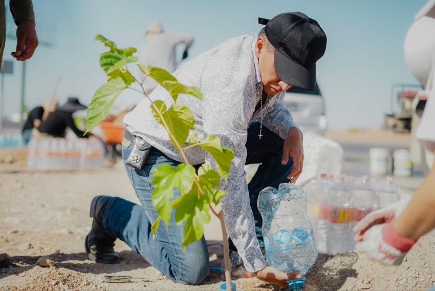 Ciudad Juárez, Chih. – Como parte del compromiso de plantar 30 mil árboles en toda la ciudad, acción iniciada días atrás en El Chamizal, el diputado federal electo por el distrito 04, Alejandro Pérez Cuéllar, realizó la plantación de poco más de 60 árboles en puntos estratégicos de la ciudad, en los parques Melquiades Alanís y Hermanos Escobar, así como el Umbral del Milenio.