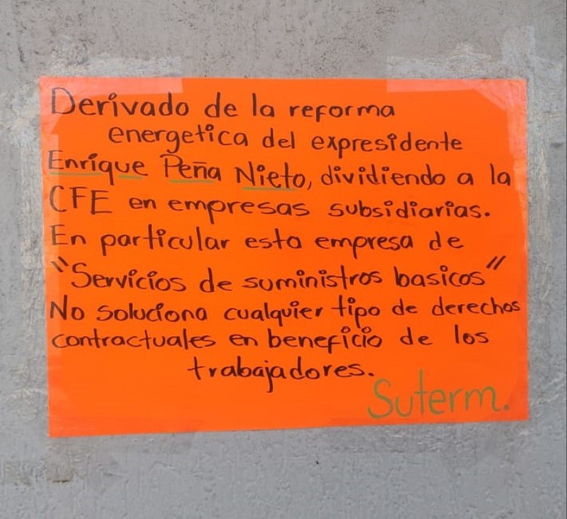 La reforma de 2014 de Enrique Peña Nieto dividió a la Comisión Federal de Electricidad, en filiales entre las que se encuentra Suministrador de Servicios Básicos y desde entonces las condiciones laborales no han sido las mismas, explica Jesús Guillermo Durán Martínez, secretario general de la Sección 90 del SUTERM.