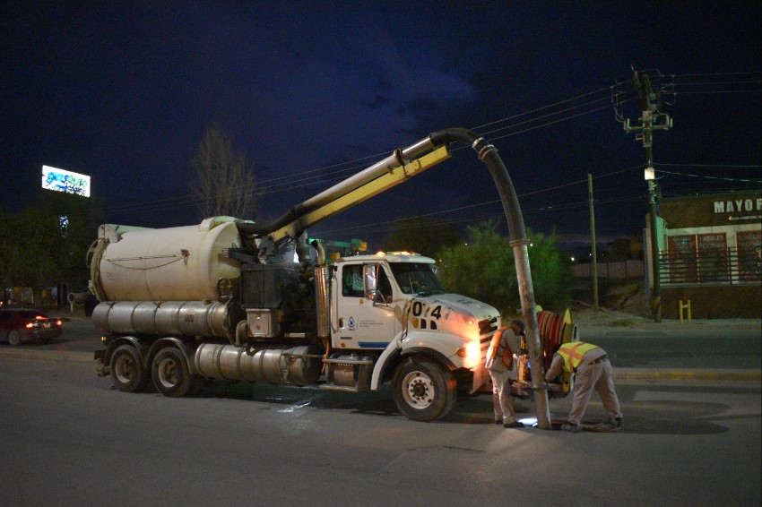 Tal y como lo ha instruido la gobernadora María Eugenia Campos, la Junta Municipal de Agua y Saneamiento realiza estos trabajos para evitar problemas en la salud de los juarenses originados por las aguas residuales.