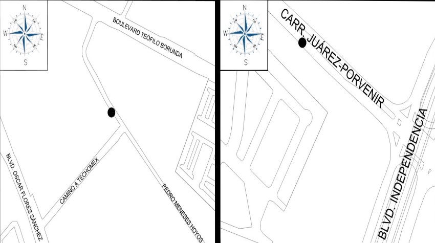En el primero de los casos, los trabajos serán sobre la calle Pedro Meneses Hoyos, rúa en la que se afectará el carril derecho en sentido de poniente a oriente, en el cruce con Camino a Techomex.
