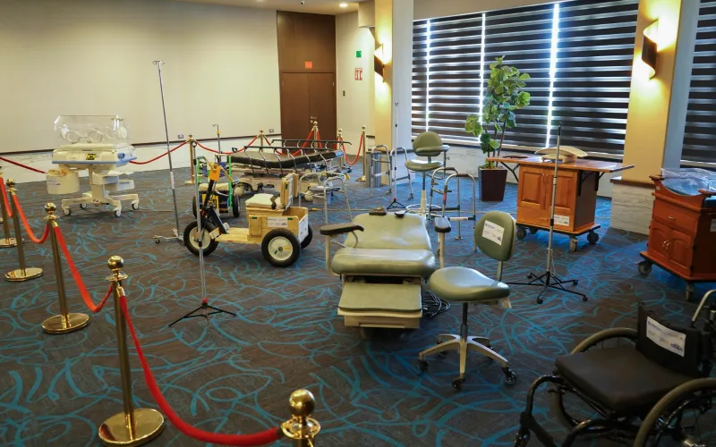 El equipo entregado consta de muletas, bastones, andadores, básculas, carros de movilidad, tripiés, portasueros, mesas de exploración, sillas dentales, camillas de traslado, camas eléctricas y colchones.