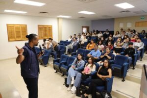 Durante su visita al Instituto de Ciencias Sociales y Administración (ICSA), Frederico ofreció una charla a los estudiantes de Derecho, donde compartió los recuerdos, aprendizajes y anécdotas que marcaron su paso por la UACJ y por esta frontera.