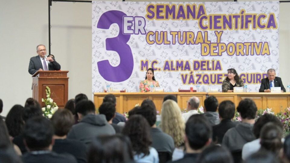 Chihuahua, Chih. – Con un enfoque en la celebración del conocimiento, la creatividad, la salud y la convivencia universitaria, la Facultad de Medicina y Ciencias Biomédicas de la Universidad Autónoma de Chihuahua, inauguró su 3er Semana Científica, Cultural y Deportiva “M.C. Alma Delia Vázquez Aguirre”.