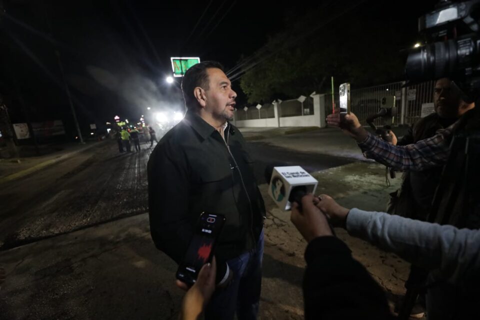 Ciudad Juárez, Chih. – El Presidente Municipal, Cruz Pérez Cuéllar, supervisó la noche del viernes los trabajos de repavimentación que se llevan a cabo en las avenidas Tecnológico y Rafael Pérez Serna, como parte del programa de mantenimiento de vialidades.
