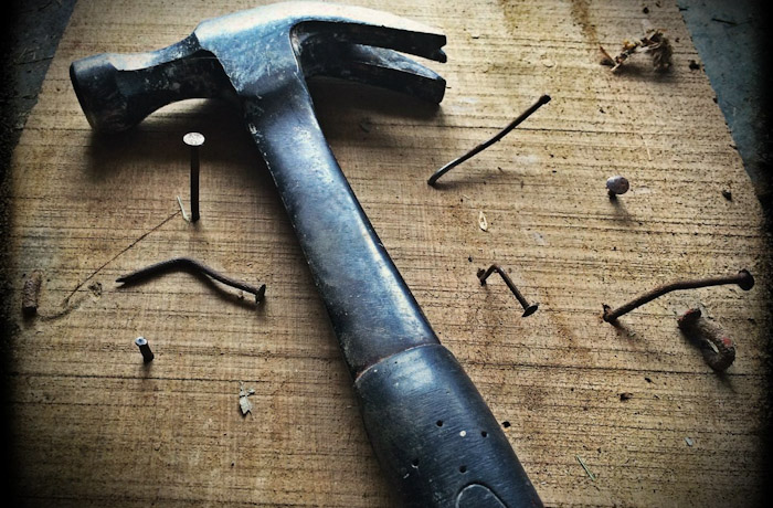 El niño obedeció las indicaciones de su padre. El primer día clavó más de 10 y pronto su puerta estaba casi llena de clavos.