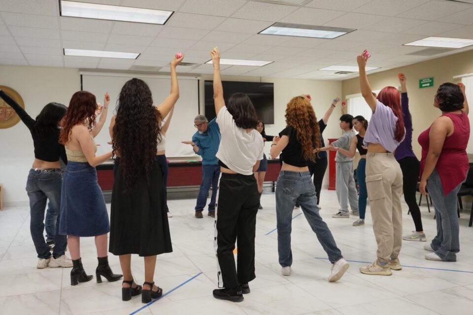 Nuevo Casas Grandes, Chih. – Estudiantes que integran los grupos representativos del Campus de la Universidad Autónoma de Ciudad Juárez (UACJ) en Nuevo Casas Grandes tomaron la Masterclass titulada “Desenvolvimiento escénico” la cual fue impartida por el maestro César Cabrera Sánchez.