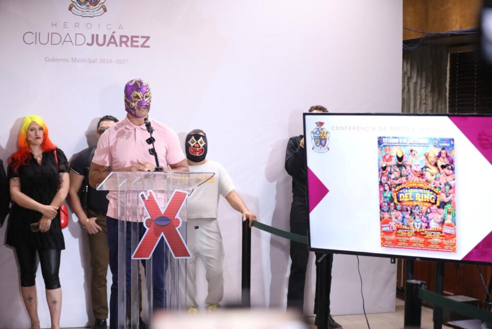 Ciudad Juárez, Chih. – Con la intención de celebrar a la niñez en su día, el Gobierno Municipal, a través del Instituto Municipal del Deporte y Cultura Física (IMDEJ)llevará a cabo una gran función de lucha libre denominada “La Gran Fiesta del Ring”, se dio a conocer en conferencia de prensa.